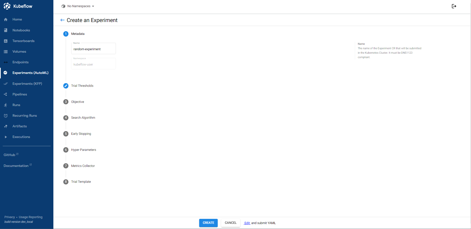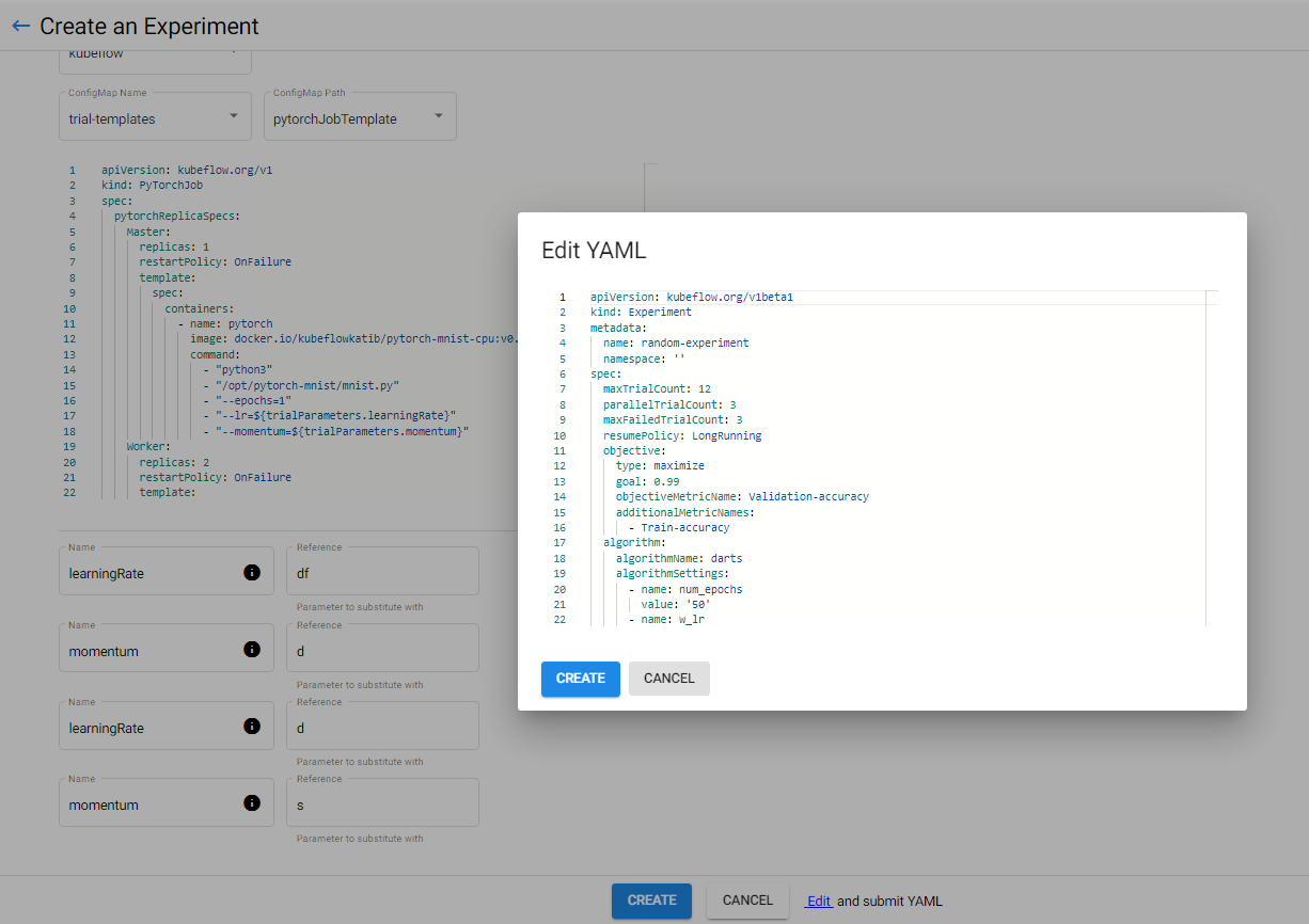 - "Experiment" CRD를 직접 작성하여 작업을 정의할 수도 있고, UI를 이용하여 쉽게 CRD를 작성 가능하다.