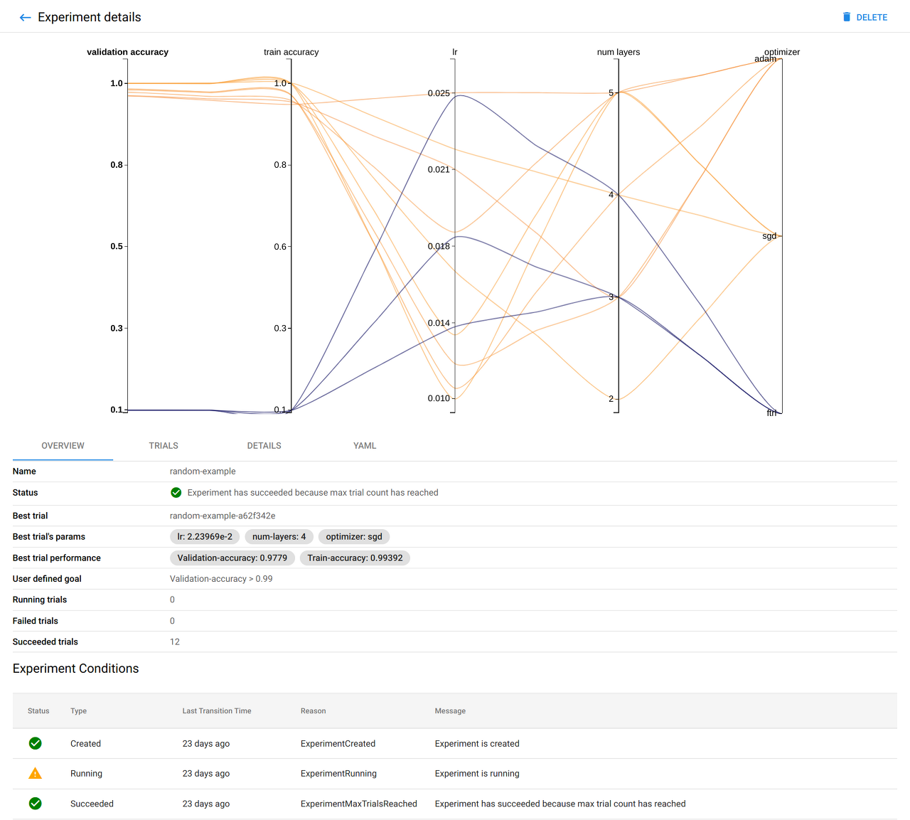 - Max Trials : 최대 몇번의 학습을 진행할지를 정해줌(과도한 H/W 리소스 사용을 방지)