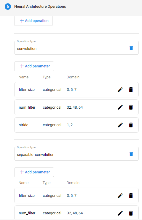 - 여섯 번째는, Neural Architecture Operations이다. NAS에서 사용되는 기본 연산을 위한, 네트워크 구조 생성 및 변경에 사용된다. 모델의 구조를 생성하기 위한 파라미터등의 가능한 후보를 정의해서, NAS에서 모델을 찾는데 활용할 수 있다.