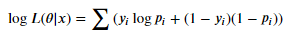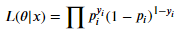 - 최대 우도 방법은 입력변수(x)와 모델 파라미터(θ)가 있을 때, 실제 결과 값(y)가 나오는 Likelihood를 최대화하는 방법이다. Likelihood 함수는 최대화하는 값을 구하는 것이, 입력 변수에 대한 실제 결과 값을 가장 잘 추론할 수 있는 파라미터를 찾는 것이다. (yi:i번째 Label - 0 or 1, pi: i번째 성공 확률)