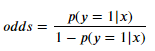 odds 식 :성공 확률 (y=1)이 실패 확률(y=0)의 몇 배인지 나타내는 식