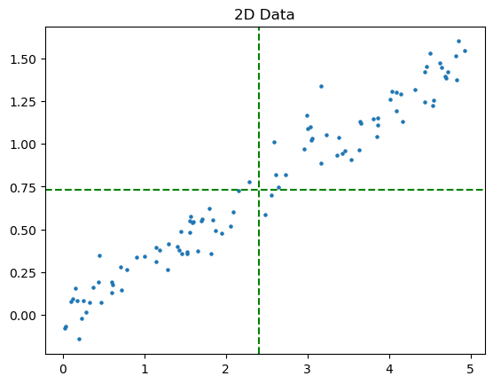 해당 데이터에서 각 차원의 평균이 원점이 되는 새로운 축을 그린다. (Conviance에서 mean shift하는 과정을 의미한다.)