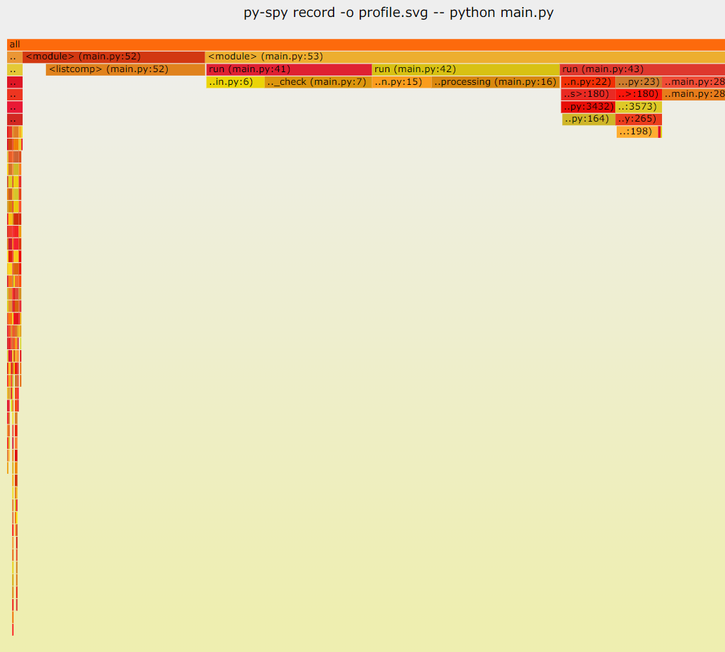 - CPU 사용률을 직접 측정하기는 어렵지만, 각 Process에 걸리는 부하를 간접적으로 알 수 있는 도구가 있는데, 바로 py-spy이다.