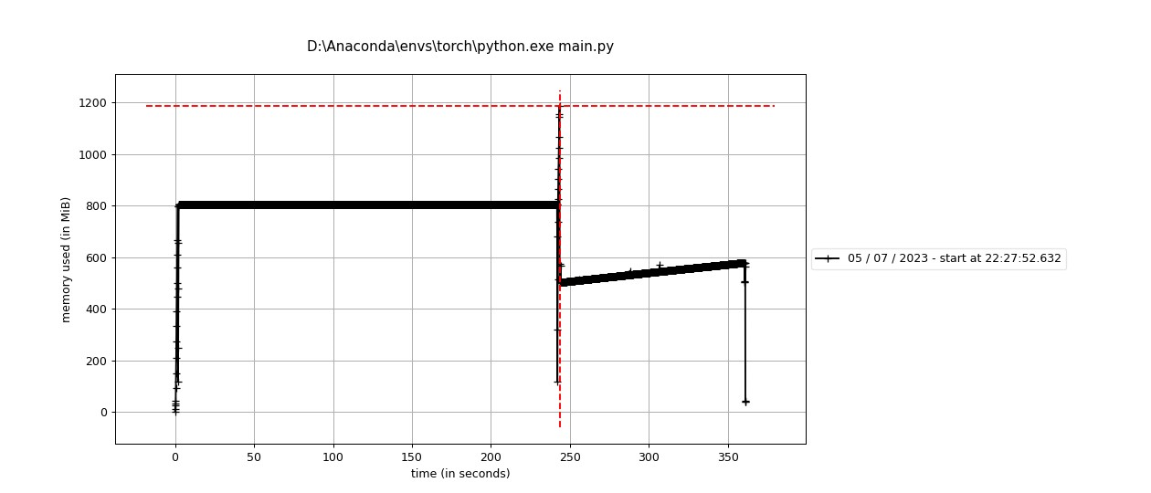 - memory_profiler를 run 한 후, 아래 명령어로 그래프를 그릴 수 있는데, 사실 이 그래프로 뭘 알 수 있는지는 의문이다. (그냥 시간에 따른 메모리 사용량만 표시된다.)