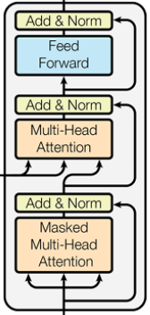 - Decoder는 Masked Multi-Head Attention → Residual Add & Layer Norm → Multi-Head Attention → Residual Add & Layer Norm → Feed Forward → Residual Add & Layer Norm 순으로 구성되어 있다.