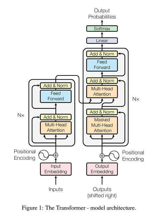 - 전체 Transformer는 Input Embedding, Positional Encoding, Output Embedding, N개의 encoder와 N개의 decoder로 구성되어 있다.