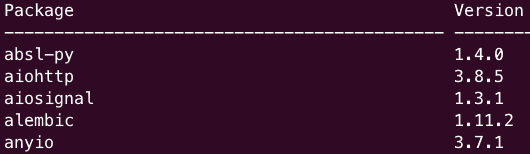 - pip list는 현재 환경 (local or 가상환경) 내에 존재하는 패키지들과 각 패키지의 버전을 나열해 준다.