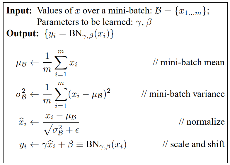 - 이 과정을 Batch Normalization이라고 하고, 그 자세한 과정은 아래와 같다.