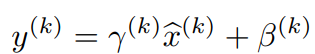 - 단순히, 위처럼 input을 normalization 하면, 각 layer의 output 값들이 변경될 수 있기 때문에, 아래처럼 original model param을 구해 준다. 이때, gamma과 beta는 학습가능한 parameter이다. 즉, normalization 한 값을 original 값으로 돌리기 위한 parameter들을 학습하는 것이다.
