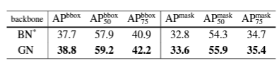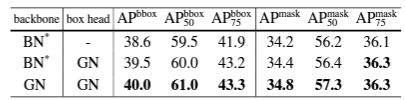 - COCO 데이터셋에서의 object detection과 segment 등에서 GN은 BN을 대체할 수 있음을 보였다.