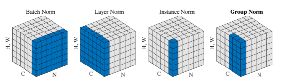 - GN은 channel 방향으로 그룹을 나눠, 각 그룹에 대해 normalization을 위한 mean과 variance를 구한다.