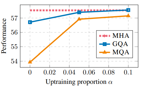 - 이 논문에서는 기존의 multi-head 언어 모델의 checkpoint들을 MQA 기능을 갖춘 모델로 변경하는 방법을 제안하여, pre-training 과정의 5% 정도의 계산량만 사용하도록 한다.