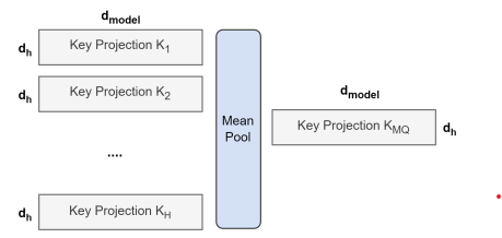 - 우선, 아래 그림처럼, key, value head들을 mean pooling을 통해, 하나의 vector로 만든다. (단순 여러 개중 하나를 뽑는 당식이나, 처음부터 하나의 key, value를 하는 방식보다 좋은 성능을 가진다고 한다.)