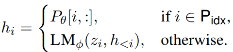 - 만약, i가 prefix index에 포함되지 않는 경우에도, hi는 Pθ에 의존하게 된다. (prefix는 항상 입력값의 왼쪽에 붙기 때문에 오른쪽에 영향을 미치기 때문이다.→ 왼쪽에서 오른쪽으로 token이 처리되기 때문) 즉, i가 prefix index에 없더라도, prefix가 영향을 미치게 된다.