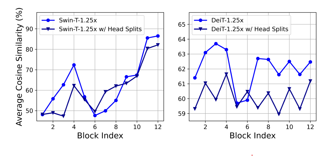 - 이를 통해, 1) 기존 channel 구성 방식(FFN 확장 비율 :4)은 마지막 몇 개의 block에서 많은 중복을 초래한다. 2) Q, K는 V에 비해, 훨씬 많은 중복이 존재하고, V는 상대적으로 더 큰 dimension을 선호한다. 는 점을 유추할 수 있다.