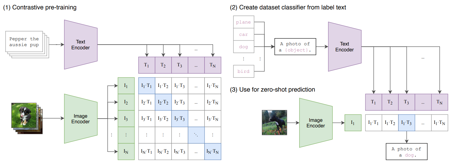 - CLIP(Contrastive Language-Image Pre-training)은 OpenAI가 2021년 1월 발표한 멀티모달 AI 모델이다.