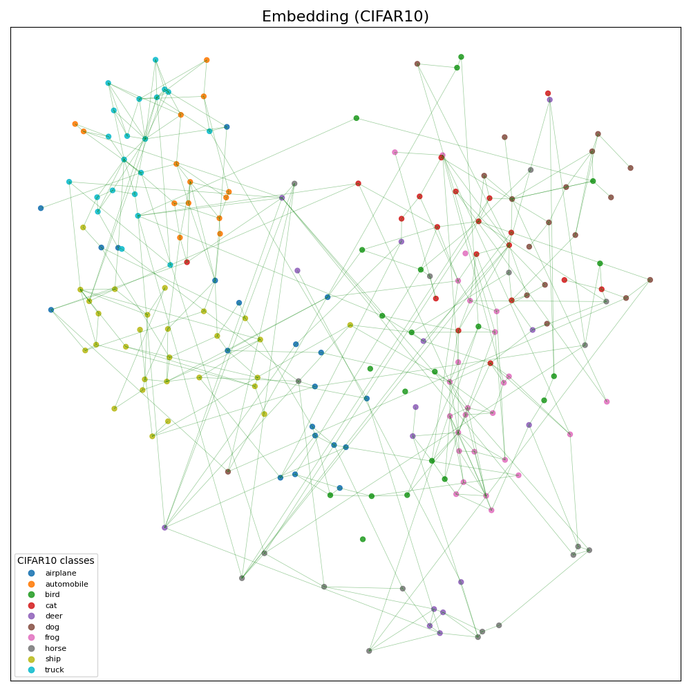 - 예를들어, Image Classification 모델의 중간 Feature를 사용한다면, 이미지의 모양과 색깔 등의 시각적 특성이 Embedding이 된다. 이 경우 비슷한 시각적 특성을 가진 이미지들은 벡터 공간에서 서로 가까운 위치에 존재하고, 다른 시각적 특성을 가진 이미지들의 벡터는 서로 먼 위치에 존재할 것이다. 다만, 특정 유형의 사물이 딥러닝 모델의 클래스로 사용되었다면, 실제 시각적 차이가 크더라도 벡터 공간 내에서는 가깝게 위치할 수 있다.