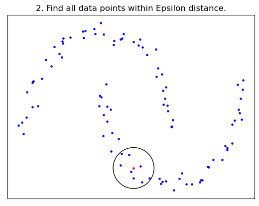 - 선택한 데이터와 Epsilon 거리 내에 있는 모든 데이터 포인트를 찾음.